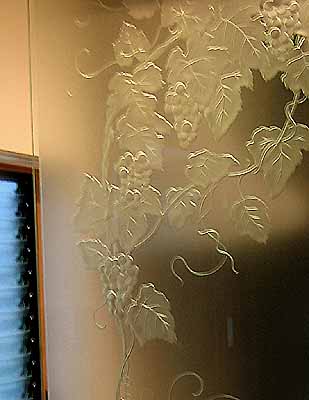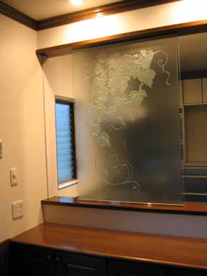 対面キッチンのカウンターに 葡萄柄のエッチングを取付けました。 W800×H1130 (デザインNO.EG-A053) |
