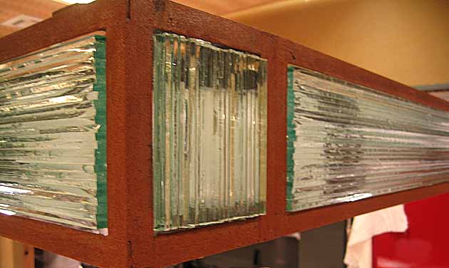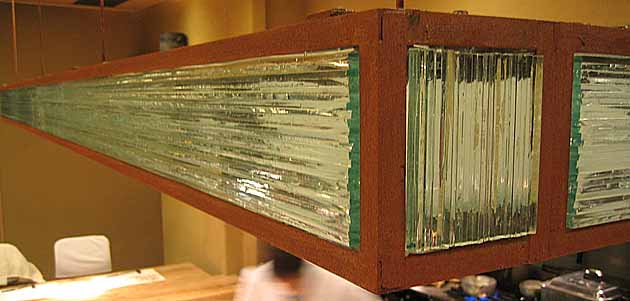 5mmのガラスを棒状にカットし、ひとつひとつUV接着した照明です。金物の製作から取り付けまで全て行いました。 (全長5600 H160 FL5) 株式会社 安芸グラス工芸 広島県安芸郡海田町日の出町4-10 TEL (082)823-3845 FAX (082)823-3846 E-mail akiglass@nifty.com 担当 : 永田