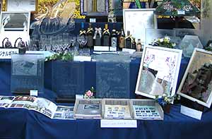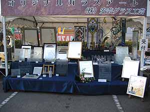展示品 すぐに壁に飾って使える額付きエッチングミラーや建築 用のステンドグラス、エッチンググラスの品々を置いて いました。 エッチンググラスといっても、実際に間近でガラスを彫 った物を見るのは珍しいとあって、興味を持たれる方が 多かったです。「どうやって彫るのですか?」と尋ねられ るお客さんもたくさんいらしゃいました。 時期は少し早かったのですが、クリスマスの商品も 用意しました。 |
