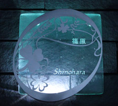 | 表札、ウェルカムボード、席札ボトル・グラス、記念品、オリジナルギフト、マウスパッド、建築用エッチングガラス、ステンドグラスの製作 サイト内のすべての内容の無断引用・転載をお断りします