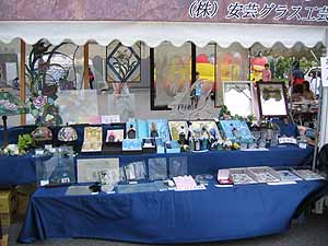 | 展示品 今回の展示品です。前回展示したものもありますが 化粧箱入りのギフト商品を中心に目玉商品として お求めやすいインポートの小物を揃えておりました。 小さめのステンドグラスのランプシェードや金魚鉢など、 なかでも金魚鉢は超特価(大\1,000 小¥600)の せいか、すぐに売り切れました。 ご盛況頂きましてありがとうございました。 |