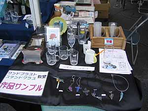 | 受付でサンプルを見ながら、どれを作ろうか?と選んでもらいます。 グラスのブラストかステンドアクセサリーか子供達には迷うところです… |