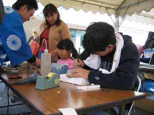 ![]() 小型ブラスト機2台持って行きました。 お父さんも興味深々…。 |