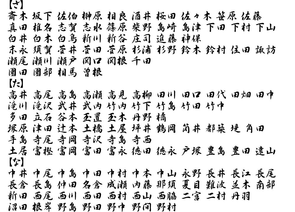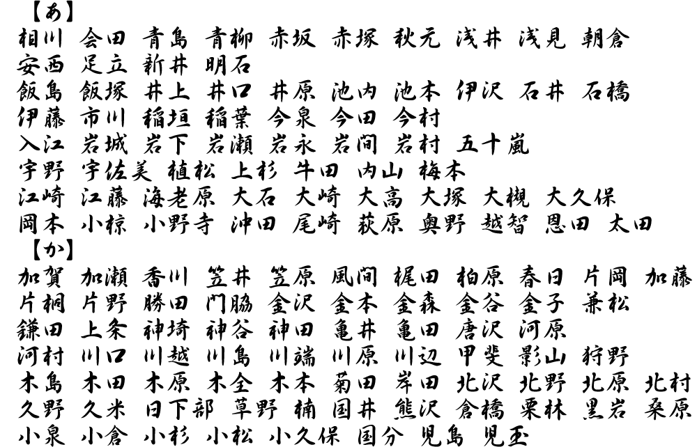 表札用書体サンプル