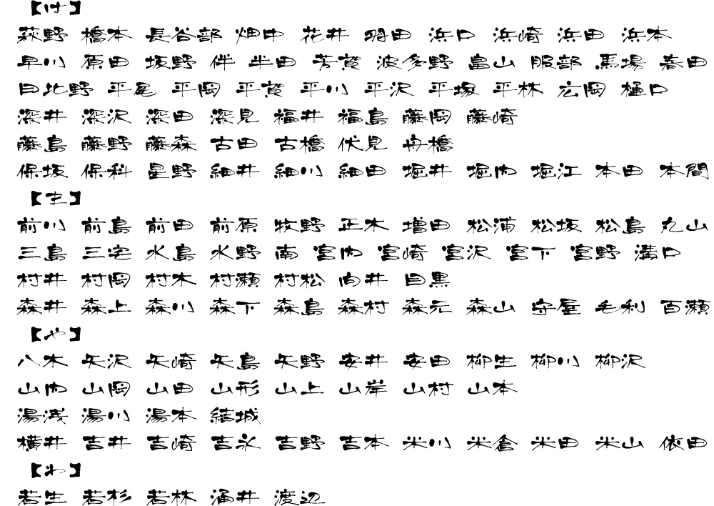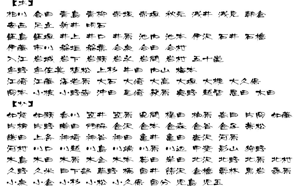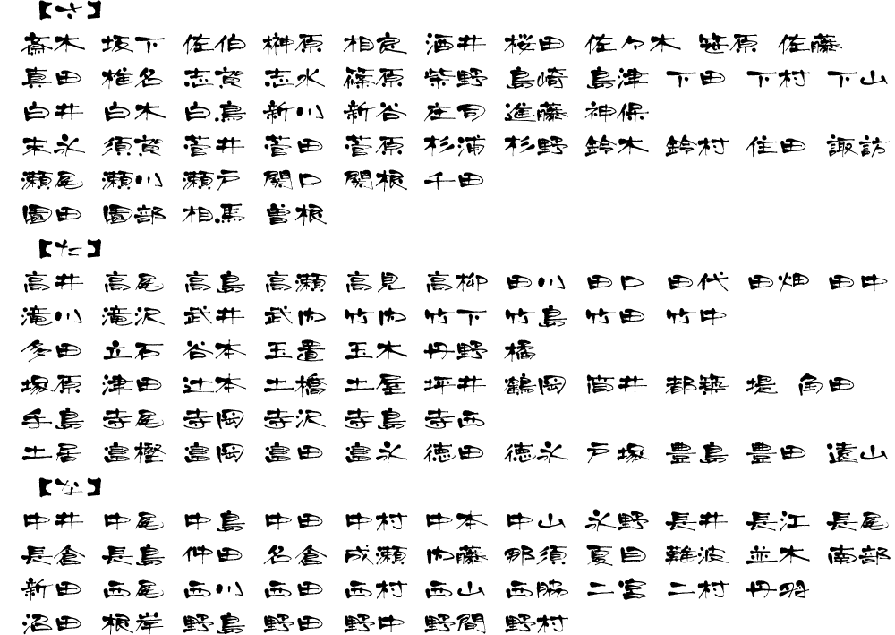 表札用書体サンプル