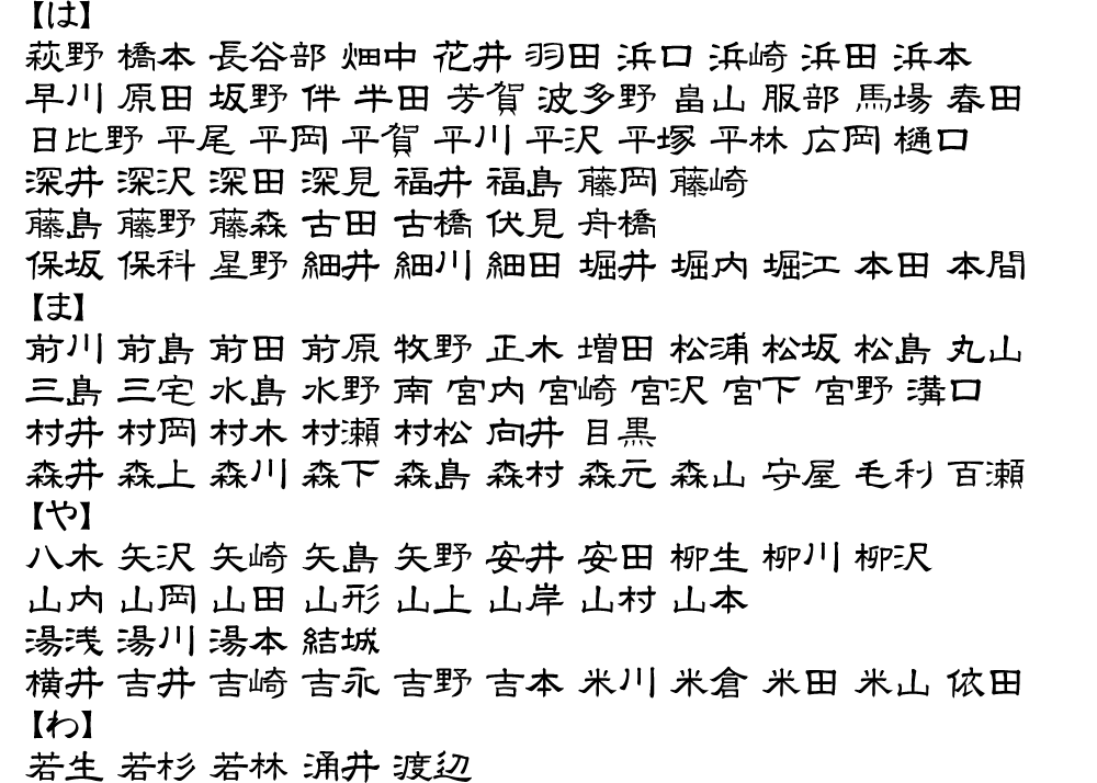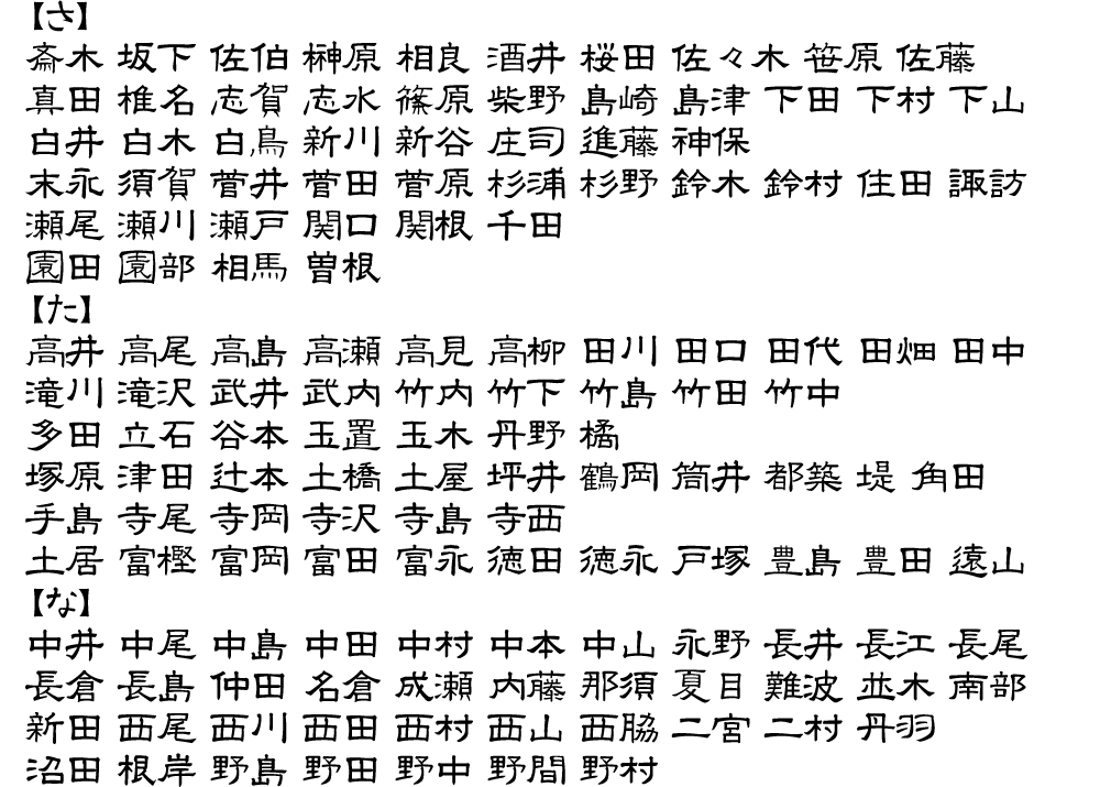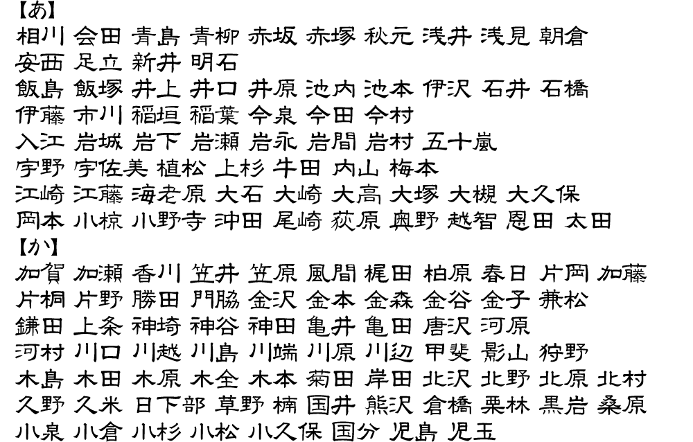 表札用書体サンプル