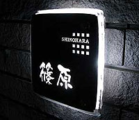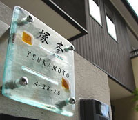 表札、サインプレート オシャレなアートガラス表札はいかがでしょうか? 裏面に石肌模様を施しており、太陽光に反射して美しく輝きます。 >>表札TOPへ